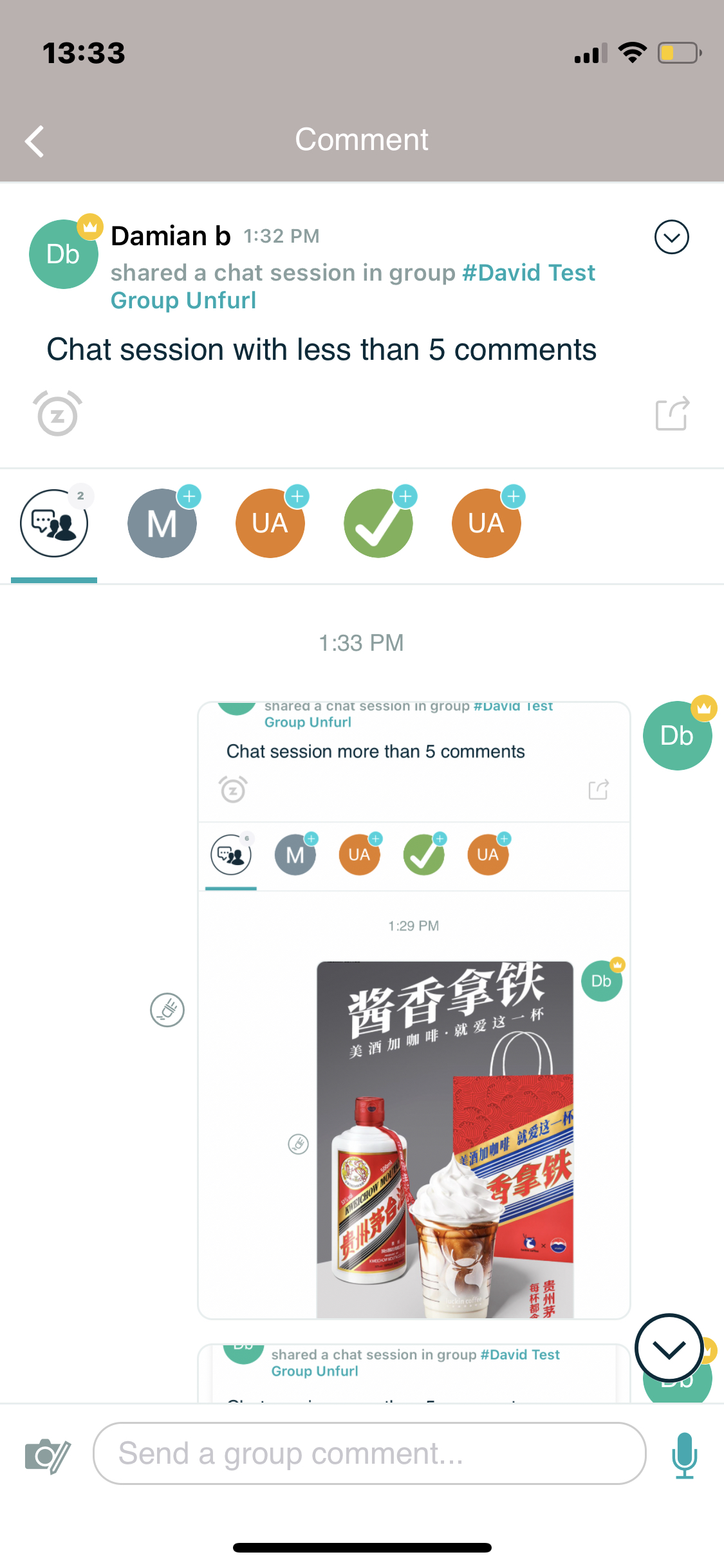 Comment here to discuss with all recipients or tap a user's profile image to discuss privately.